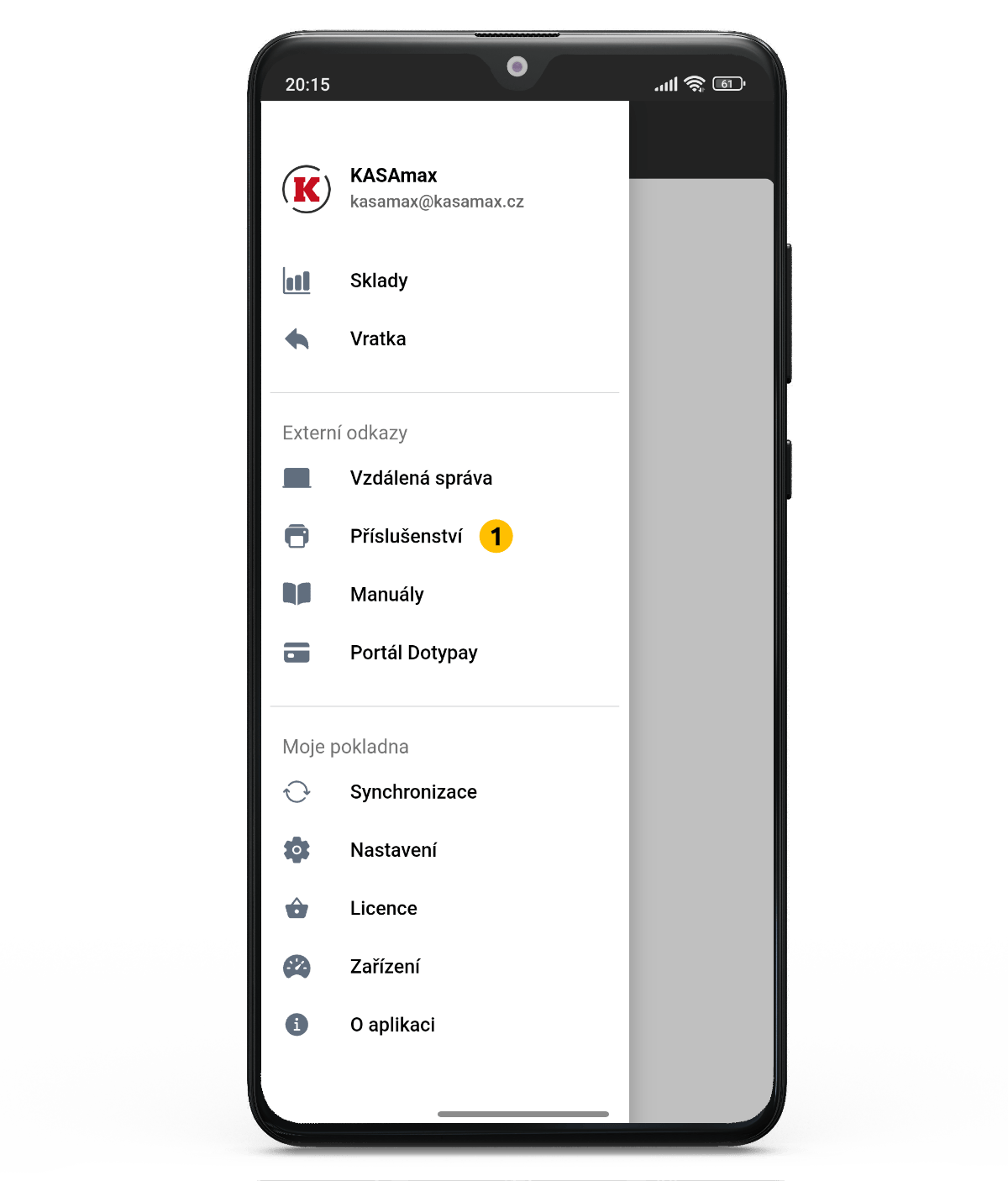 V postranním menu najdete i externí odkaz do e-shopu, kde je možné zakoupit Příslušenství (1).