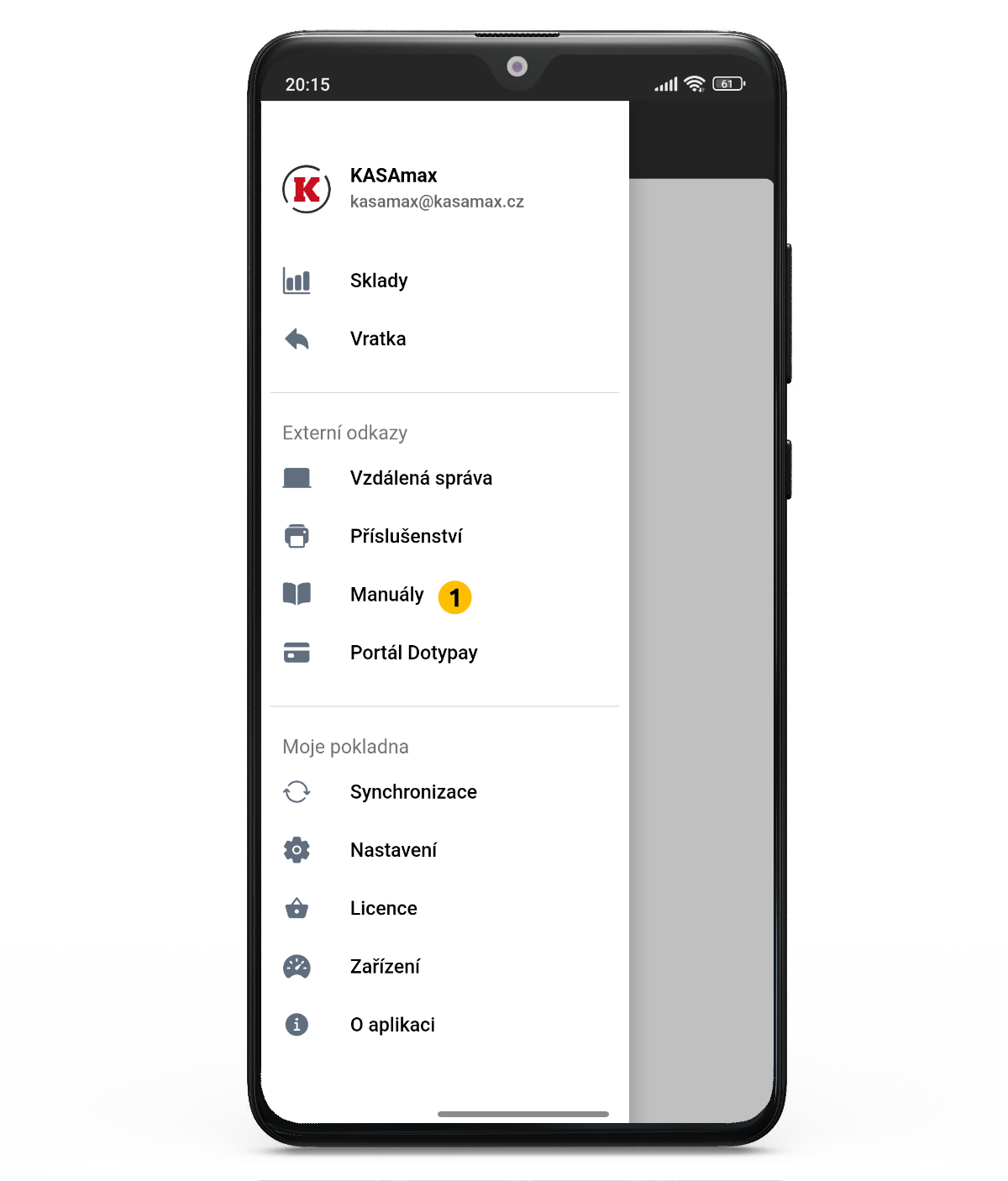 Manuály na mobilním číšníkovi V postranním menu najdete i externí odkaz do nápovědy mobilního číšníka (1).