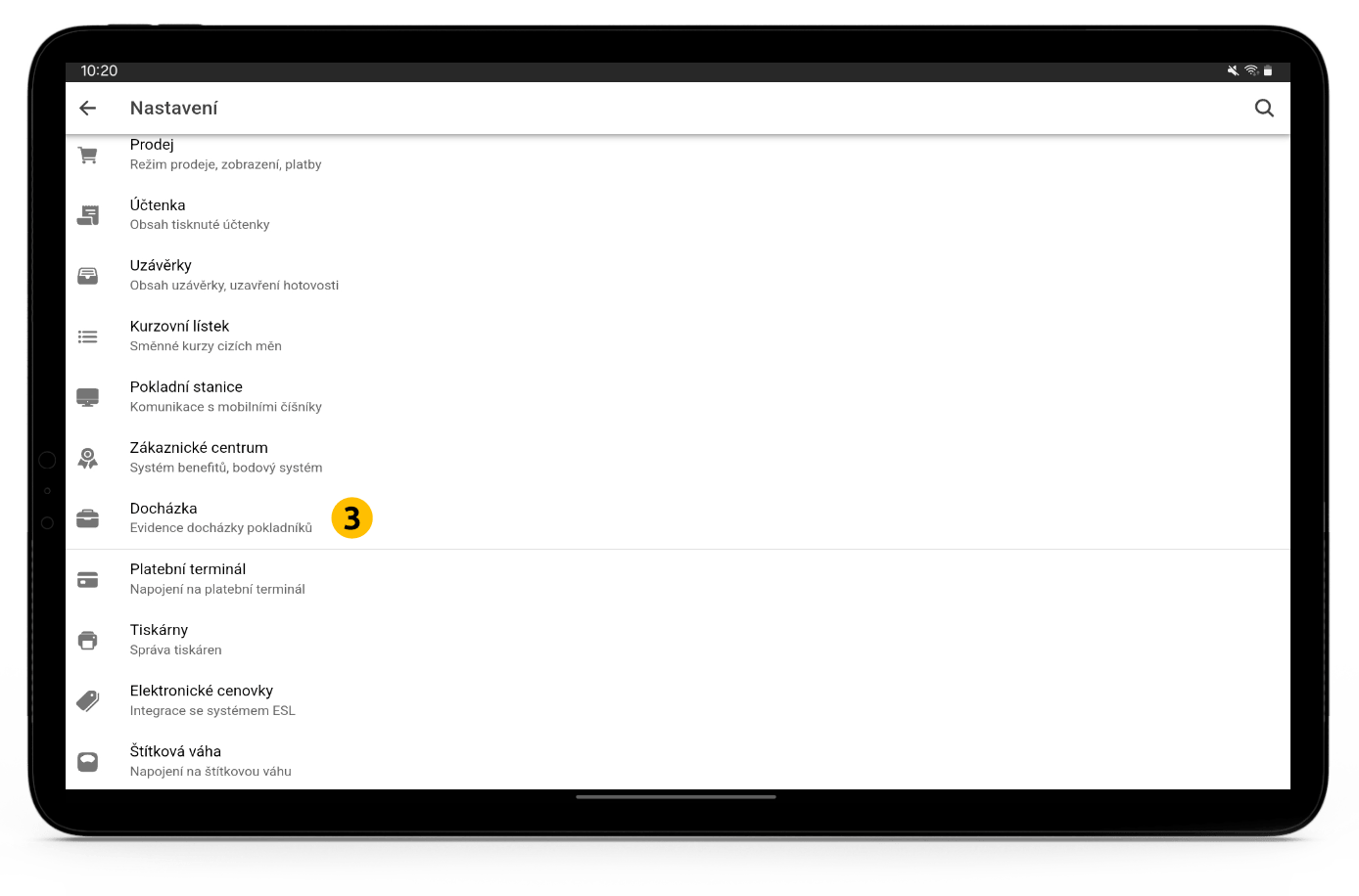 V nabídce Nastavení → Docházka lze nastavit tuto funkci (3).