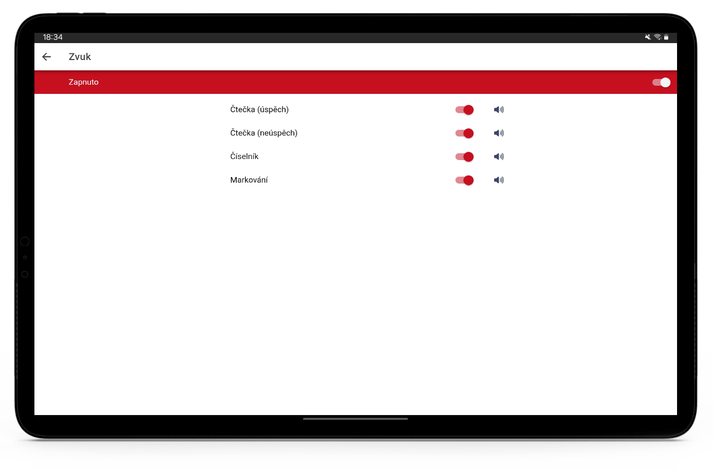 V této části nastavení máte možnost kompletně vypnout zvuky aplikace, případně vypnout pouze vybrané: