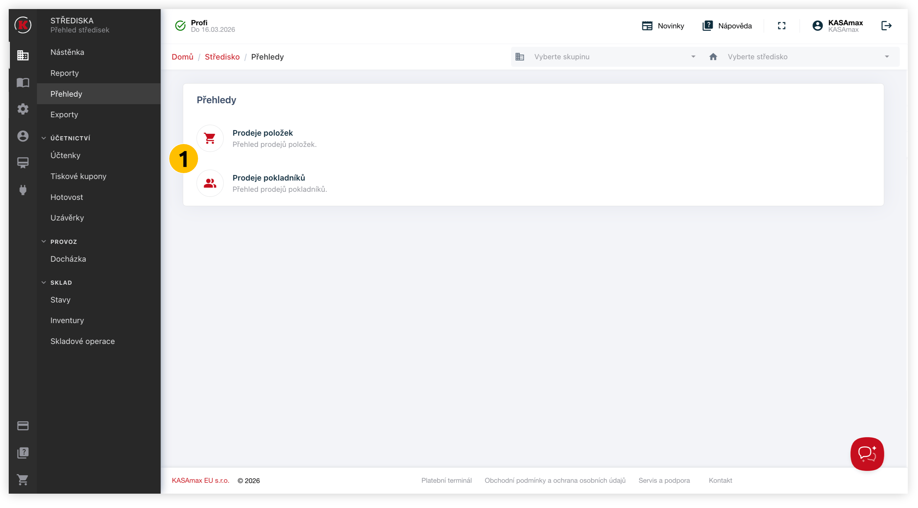 Funkce je dostupná v menu Střediska → Přehledy.
