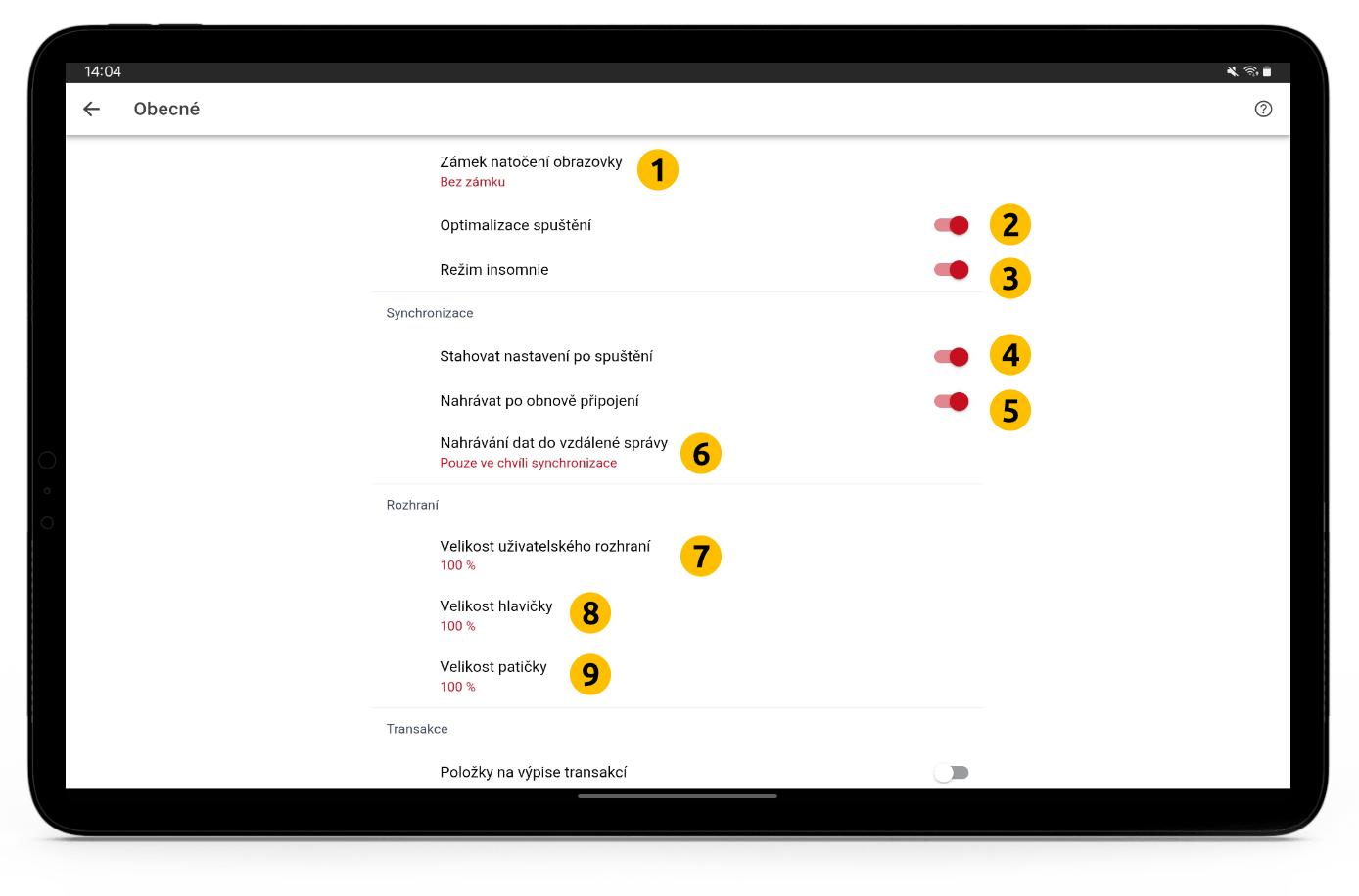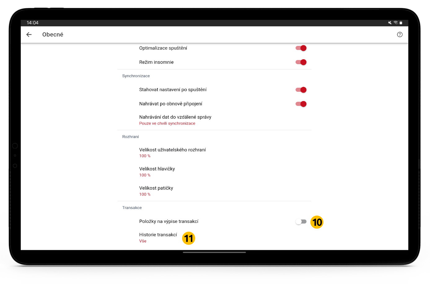 V obecném nastavení najdete převážně uživatelské uzpůsobení aplikace. Některé z nabízených možností máte možnost povolit či zakázat pomocí ukazatele posunutím jezdce) v pravé části nabídky.