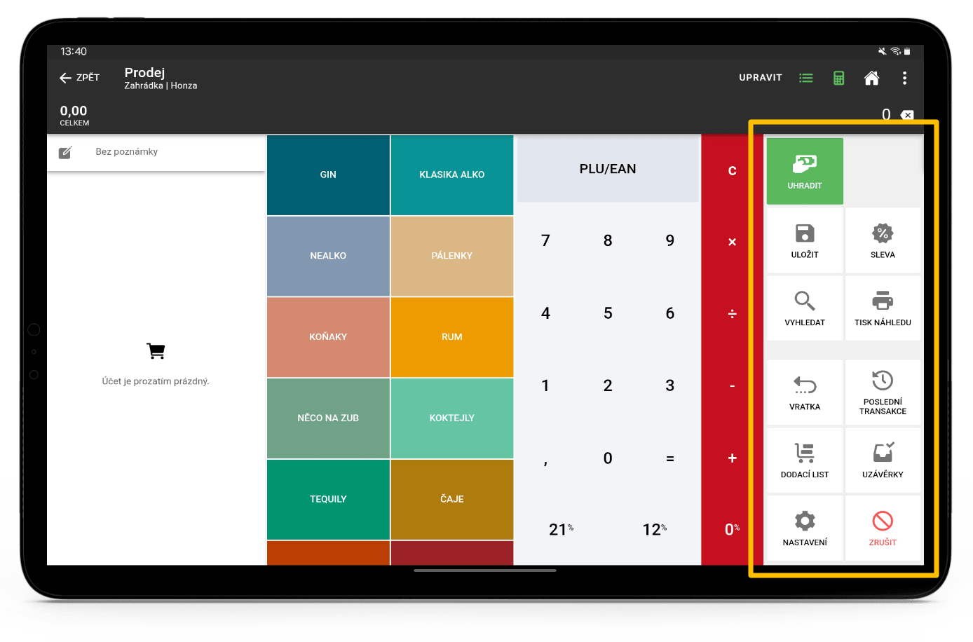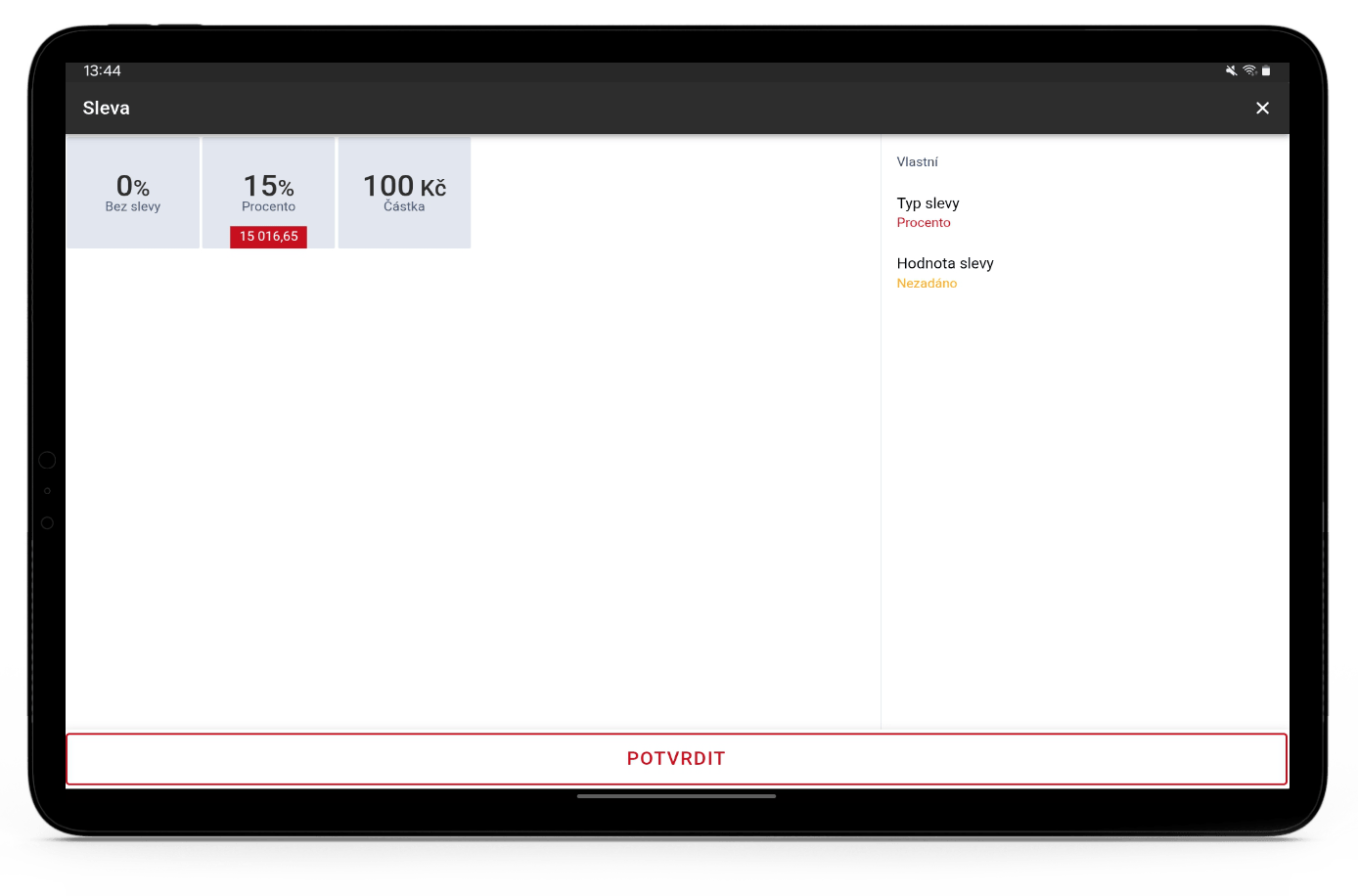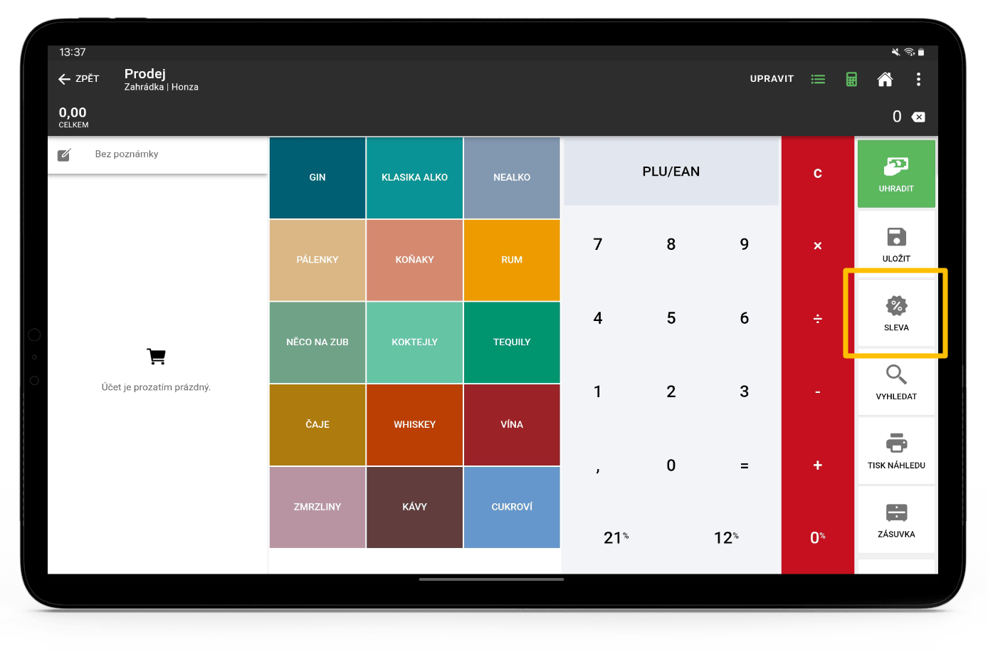 - Sleva – Tlačítko pro rychlé zadání rychlé slevy.