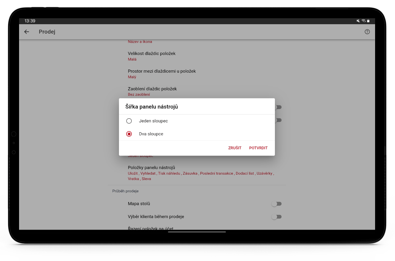 Aktivujte, pokud jste plátce DPH. Zobrazuje sazby DPH na obrazovce prodeje, u položek a na účtence.