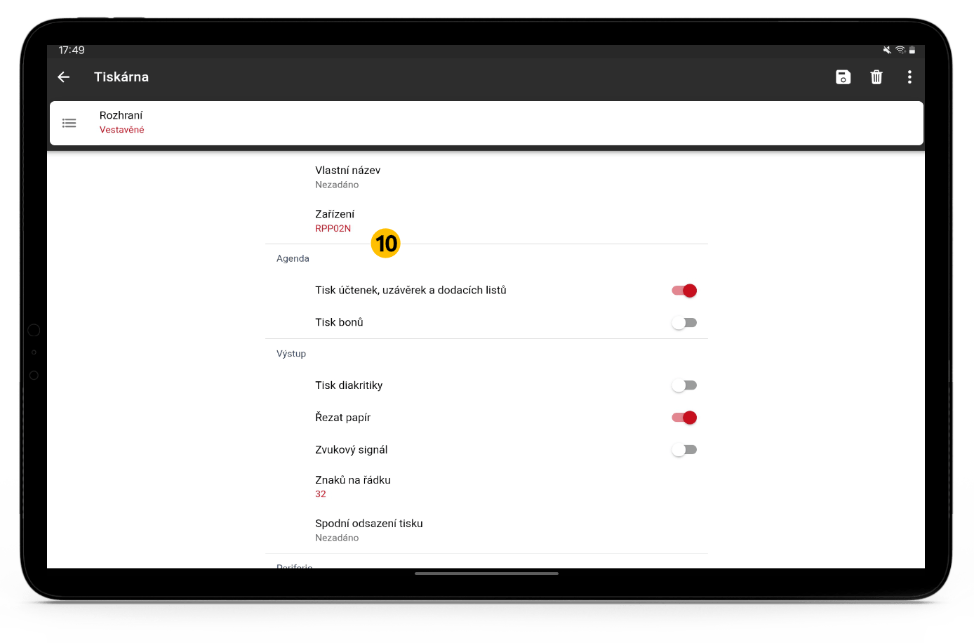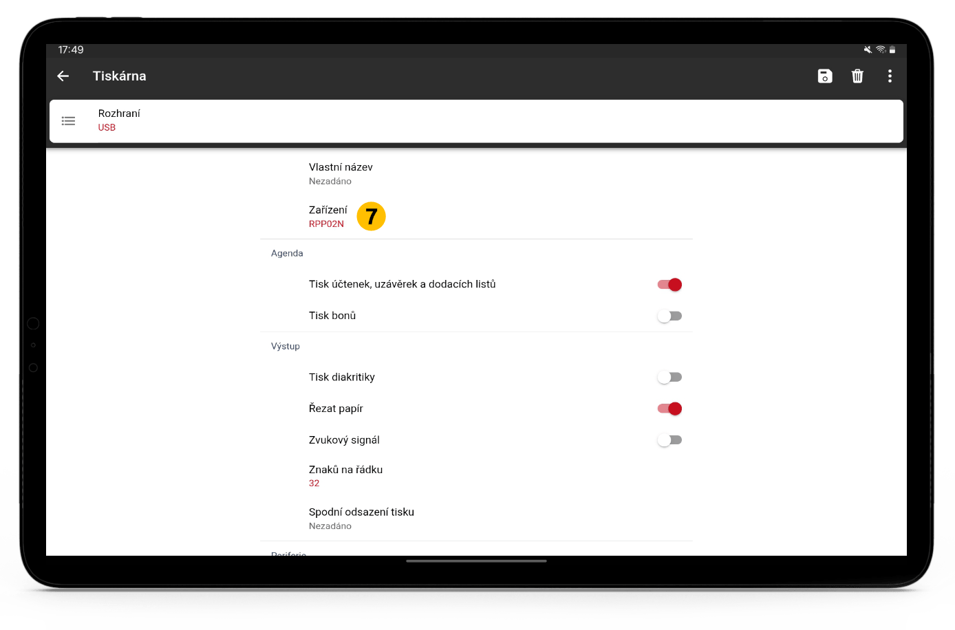 Vyberte pokud chcete tuto tiskárnu využívat pro tisk účtenek, uzávěrek a dodacích listů.